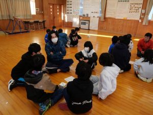 秋の読書旬間は今日が最終日で、町の図書館の方による読み聞かせが、良い締めくくりとなりました。読み聞かせの時間はお話しのろうそくに火をともすところから始まり、子ども達の表情も物語の世界へ引き込まれていきました。低学年の子ども達は、世界のお話「アナンシと五」を読み語りで聴きました。魔女の呪いがかかった「五」という言葉を口にすると命を落としてしまう物語で、登場人物が「五」と言いそうになる場面では、子ども達が思わずドキドキしながら物語を追う姿が見られました。絵のない読み語りでありながら、子ども達は耳で聞いた言葉から場面を想像し、物語の世界を存分に楽しんでいました。この読書旬間では、図書委員会の活動を通して、いつもより多くの本に親しむことができました。今回の読書をきっかけに、これからも本に親しみ、豊かな感性を育んでほしいと思います。