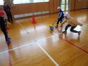 ミラノ・コルティナオリンピックでの日本人選手の活躍に、子どもたちの冬季スポーツへの関心も高まっていると思います。本校の体育館では、3・4年生がアイスホッケーのようにスティックを使ったスポーツ「ピロポロ」に挑戦しています。転がるボールをスティックで操作し、ペアの友だちと協力してゴールまで運ぶ練習をしていますが、思い通りにボールを動かすのはなかなか難しいようです。守り役にボールを取られてしまうことも多いです。少しずつボールコントロールが上達し、友だちと声を掛け合いながら取り組む姿が見られるようになってきました。オリンピックのような白熱した試合につながっていくよう頑張っています。