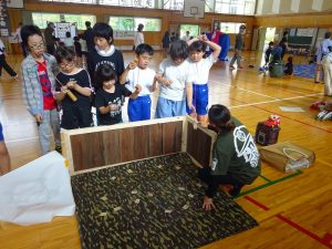 どのブースからも笑い声が響き、子ども達の笑顔があふれる様子に、おやじの会の皆さんも大変うれしそうでした。今年度の企画は昨年度からさらに工夫を重ねたもので、子ども達に楽しんで学んでほしいという思いが伝わってきました。子ども達の成長と地域の防災意識の向上を願って取り組んでくださる方々がいることもまた、この富草地区の大きな魅力です。