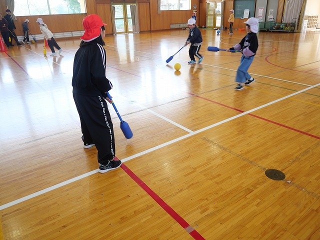 ミラノ・コルティナオリンピックでの日本人選手の活躍に、子どもたちの冬季スポーツへの関心も高まっていると思います。本校の体育館では、3・4年生がアイスホッケーのようにスティックを使ったスポーツ「ピロポロ」に挑戦しています。転がるボールをスティックで操作し、ペアの友だちと協力してゴールまで運ぶ練習をしていますが、思い通りにボールを動かすのはなかなか難しいようです。守り役にボールを取られてしまうことも多いです。少しずつボールコントロールが上達し、友だちと声を掛け合いながら取り組む姿が見られるようになってきました。オリンピックのような白熱した試合につながっていくよう頑張っています。