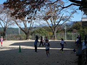 今週末のマラソン大会に向けて、これまで長距離走の練習に取り組んできた高学年の子どもたち。今日は、校庭でミニ駅伝を行いました。これまでは一人で走る練習が中心でしたが、今回はチームでの挑戦。仲間を応援したり、応援されたりする中で、子どもたちは一人で頑張る力に加えて「仲間と支え合う力」を感じながら走ることができました。校庭を大きく回り、校舎わきの坂道を上って、昇降口前の砂利道を抜け、ウサギ小屋前で折り返す300mほどのコース。路面の状態もさまざまで、平坦ではないコースでしたが、子どもたちはチームのために全力で走っていました。