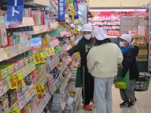 五冷飯田冷蔵では、特別に冷凍室に入れていただき、マイナス25度の世界に驚きながらも、食品を安全に保つ工夫をしっかり学んでいました。バローでは、鮮魚スタッフの方が目の前で魚をさばいてくださり、普段は見られない迫力の“プロの技”に目を輝かせていました。また、子ども達は手持ちの700円を使って家族に頼まれたお使い品と自分や家族へのお土産を購入。一つひとつ値段を確かめながら、どの商品がより良いのかを考え、実際に買い物をする学習に取り組みました。「あといくら残ってる?」「どっちのほうが安いかな?」と、真剣に考えて計算しながらお金の価値を感じる買い物ができました。
