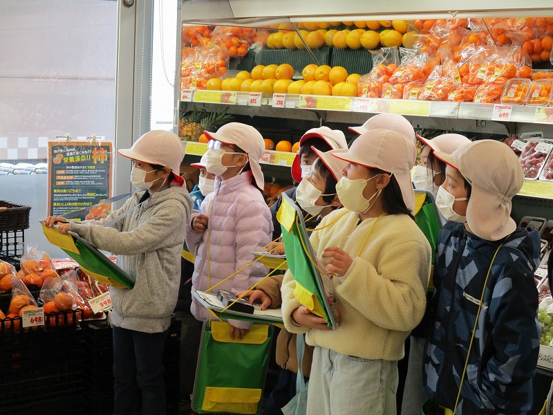 五冷飯田冷蔵では、特別に冷凍室に入れていただき、マイナス25度の世界に驚きながらも、食品を安全に保つ工夫をしっかり学んでいました。バローでは、鮮魚スタッフの方が目の前で魚をさばいてくださり、普段は見られない迫力の“プロの技”に目を輝かせていました。また、子ども達は手持ちの700円を使って家族に頼まれたお使い品と自分や家族へのお土産を購入。一つひとつ値段を確かめながら、どの商品がより良いのかを考え、実際に買い物をする学習に取り組みました。「あといくら残ってる?」「どっちのほうが安いかな?」と、真剣に考えて計算しながらお金の価値を感じる買い物ができました。