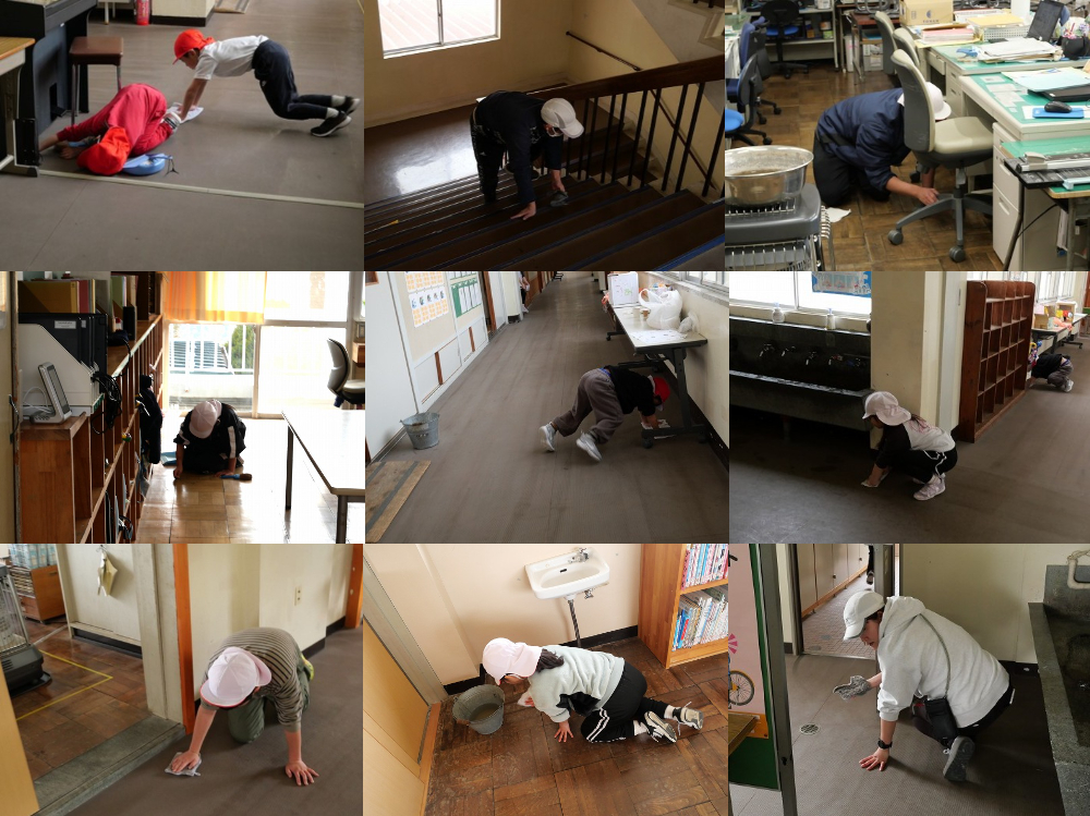 そんな厳しい寒さの中でも、子どもたちは腕をまくり、膝を床につけて、力いっぱい雑巾がけに取り組んでいました。冷たい床にも負けず、一拭き一拭き丁寧に進める姿が、校舎のあちこちで見られました。冬の寒さに負けることなく、心を込めて掃除に取り組めるのも、子どもたちの大きな力です。今日もまた、校舎は子どもたちの頑張りによって、気持ちのよい空間となりました。
