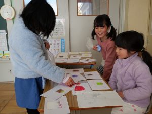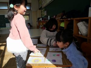 「いらっしゃいませ~!」という元気いっぱいの声が教室に響き渡り、1年生のお店屋さんごっこが始まりました。子どもたちは、体験活動を通して生き生きと学習に取り組んでいました。国語科「ものの名前」の学習で準備したたくさんの商品を机いっぱいに並べ、算数科「100までの数」で学んだことを生かしながら、楽しそうに買い物をしていました。お金の組み合わせを考え、おつりが出ないように工夫しながら買い物をする姿からは、数をただ見るだけでなく、実際の生活場面の中で自然に理解を深めている様子がうかがえました。友だちとのやりとりを楽しみながら学ぶ子どもたちの表情はとても輝いており、学ぶことの楽しさが伝わってくる時間でした。
