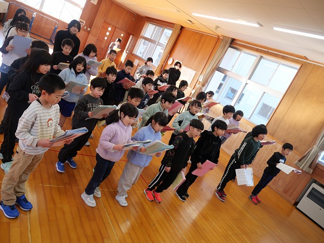 朝の時間を使って、卒業式に向けた歌の練習を始めています。在校生は、6年生の門出を祝う気持ちを込めて「変わらないもの」を贈ります。小学校でのたくさんの思い出を胸に、中学校でも力いっぱい頑張ってほしいというエールになるよう練習に励んでいます。6年生もパートに分かれて丁寧に音取りを行い、心を一つにして歌づくりに取り組んでいました。卒業式当日、互いの思いが歌声にのって会場に広がる、そんな素敵な時間になりますように。